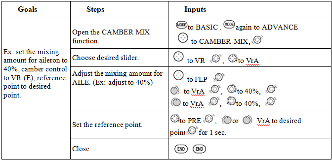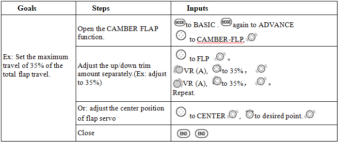 KNOB A | CH6 (flap trim if FLAPERON is off) | CH6 CAMBER-FLP FLAP-TRIM | HOV- PIT | CH6 |