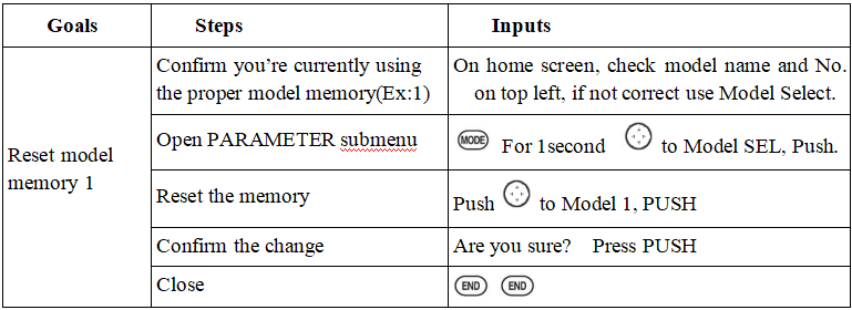 • Adjustments may be memorized and then the knobs returned to center point to use that amount of adjustment, allows easy use of the trimming knobs for multiple models. (Note that when memorization is repeated with the knob offset from center, the trim value accumulates.)