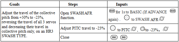 This function is to limit movement of swash plate to avoid damage to the SWASH ROB during operation aileron and ELEVATOR. It is affected in 3D flight. Movement of AILERON and ELEV is limited in the circle.