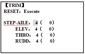 Different from ACRO, GLID AND HELI, MODEL TYPE for MULTIROTOR has an additional function TRIM, which is controlled by the VR switch. Set the TRIM OFF to avoid a mis-operation damage to the model.
