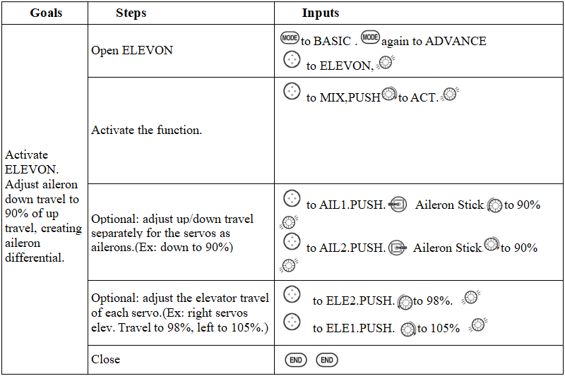 ELEVON | FLAPERON | AILE-DIFF | AILE-DIFF | |