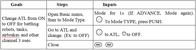 • ATTITUDE (Normal, attitude, GPS, hover, F/S, Aux)