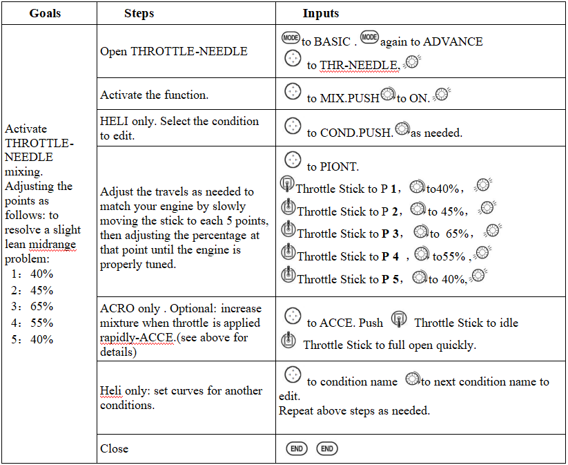SWITCH E or G* | THR- CURVE | down = CONDITION Start up = CONDITION Speed | CONDITION IDLE-UP | THR-CURVE |