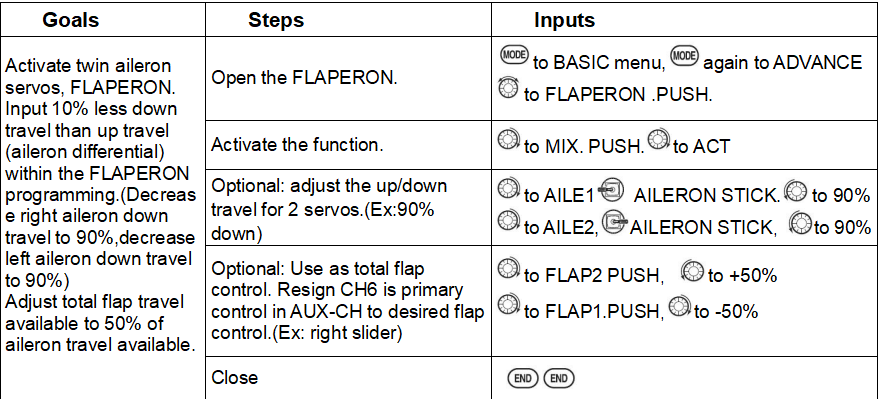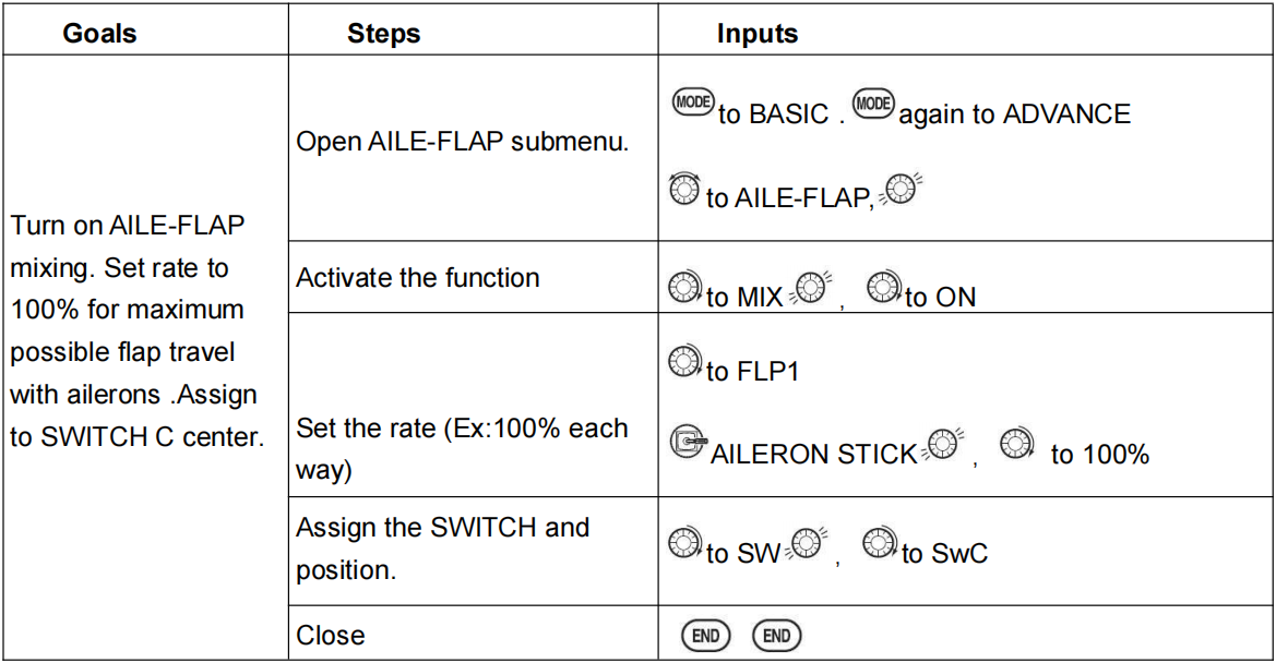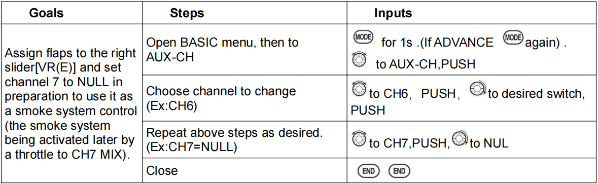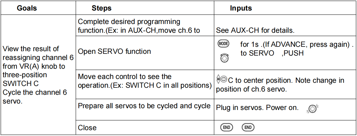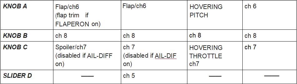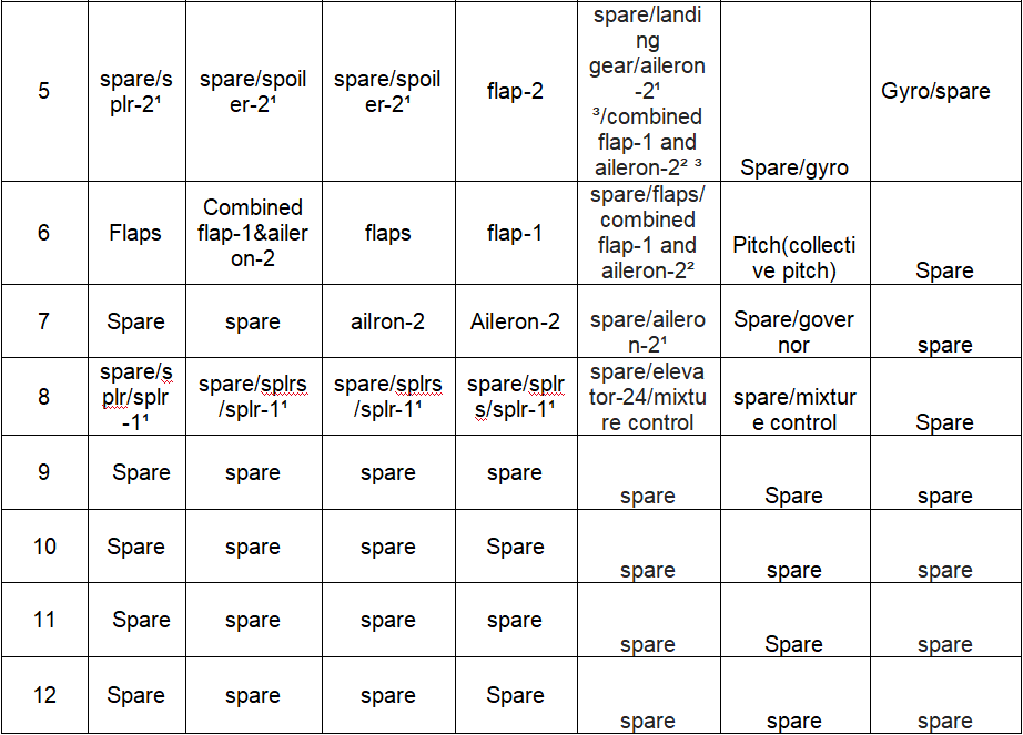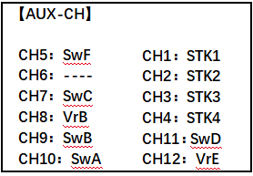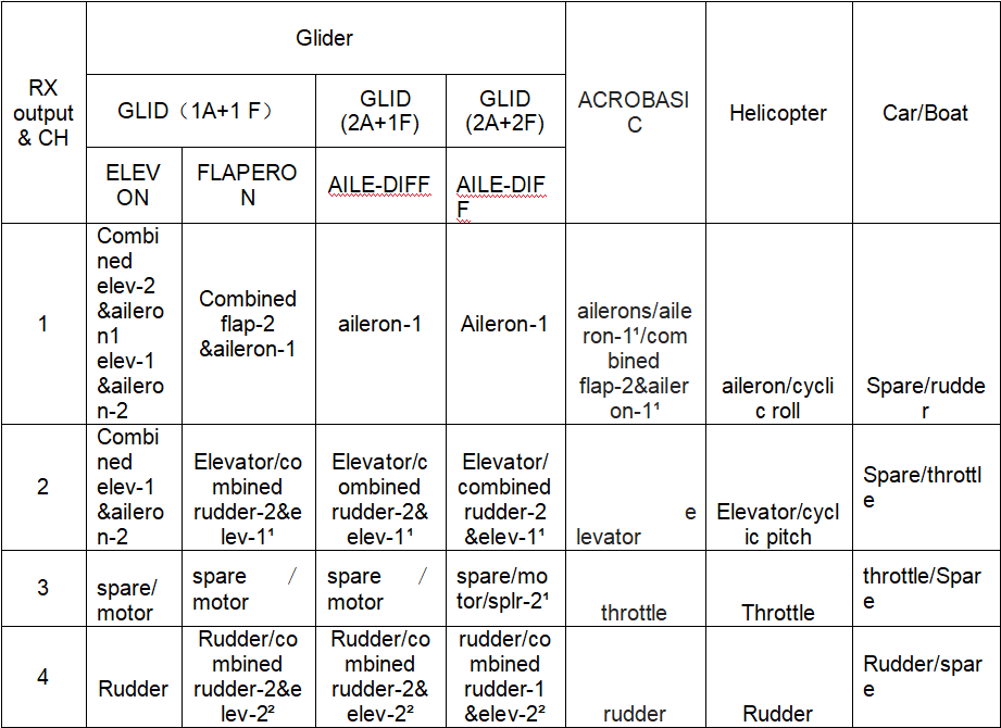 The below chart is to introduce the default output channel of the receiver when setting different models. Take acrobatic as an example.