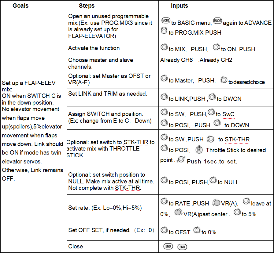 The setting of Programmable MIX of multirotor& car & boat is the same with that of acrobasic. Click here or go to page 39 to check the detailed setting method.