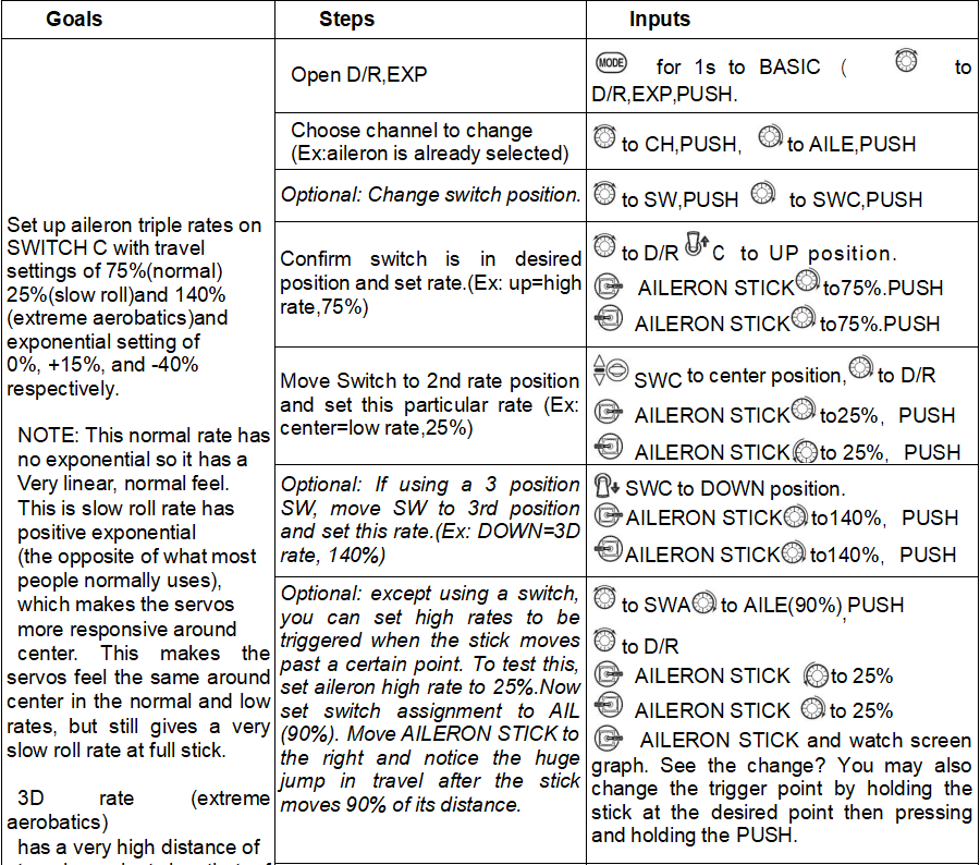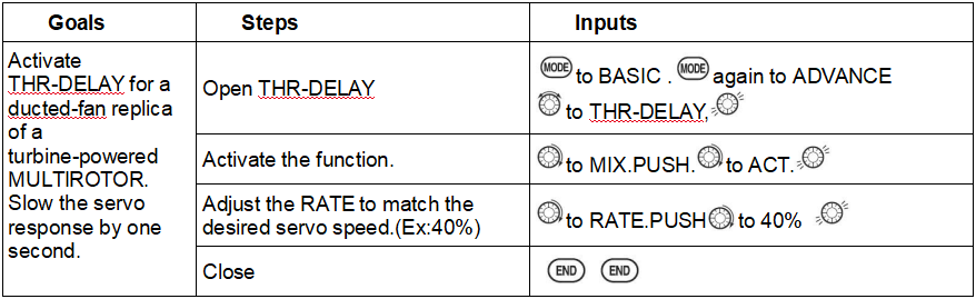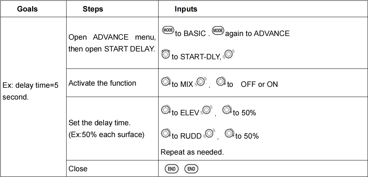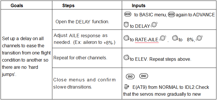 • Separate delay times are available for aileron, elevator, rudder, throttle, and pitch.