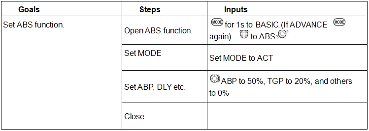 DLY: Delay amount. It ranges from 0% to 100%. Sets the delay from brake operation to ABS operation.