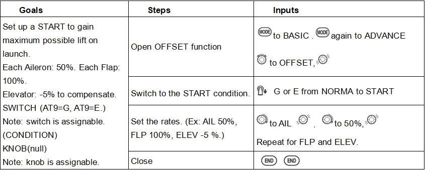 •When OFFSET is inactive (its switch is off), the OFFSET and any trim adjustments to it have no effect (model obeys the trim settings of the currently-active flight condition.)