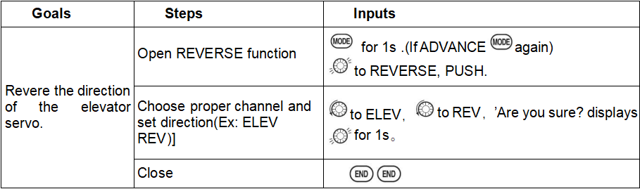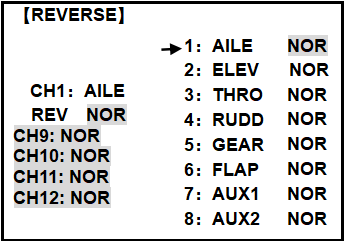 Caution: Do not switch the model when the model is powered on. Disconnect power supply of the model when switching model. After selecting model, enter the basic menu-Reverse. Set the throttle to reverse.