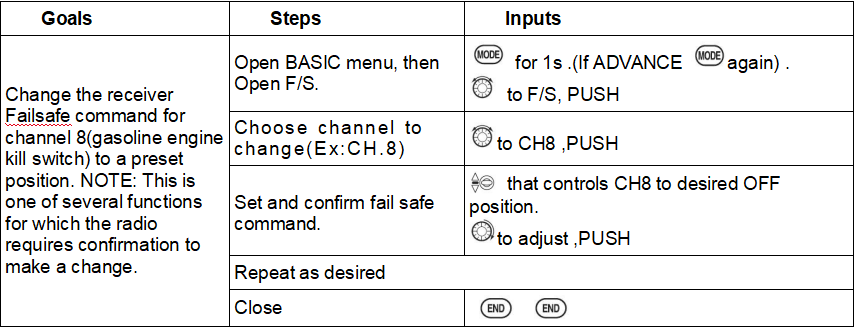 • When speed setting control uses CH7 and separate ON/OFF switch is not used, CH8 can be used for other functions.