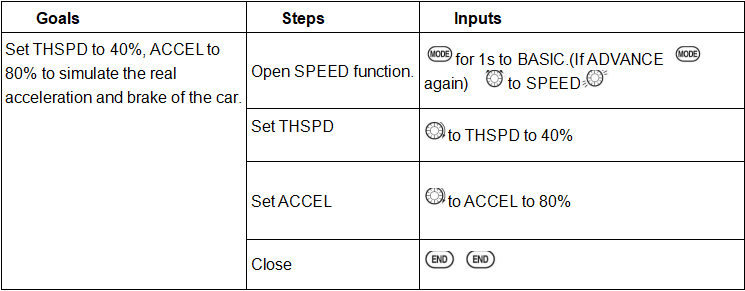 The function is to set THSPD, ACCEL and IDLUP, which can effectively avoid skid and reduce the harm to the models.