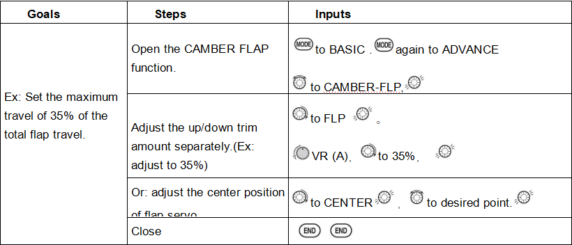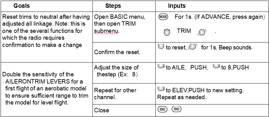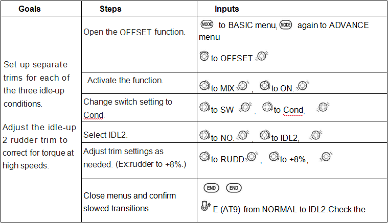• Activating OFFSET makes the TRIM LEVERS adjust the trim separately in each of the idle-up conditions.