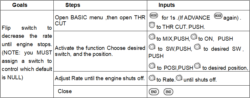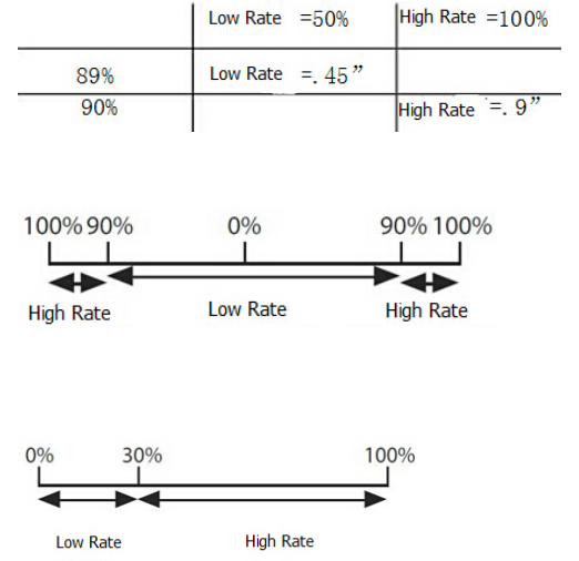 RATE: When turning on the switch, the throttle will keep at a certain rate to run. The range is from 0% to 100%, the lowest to the highest.