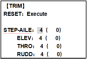 • During OFFSET operation, the aileron, elevator, and rudder travels are displayed on each trim display in the Startup screen.