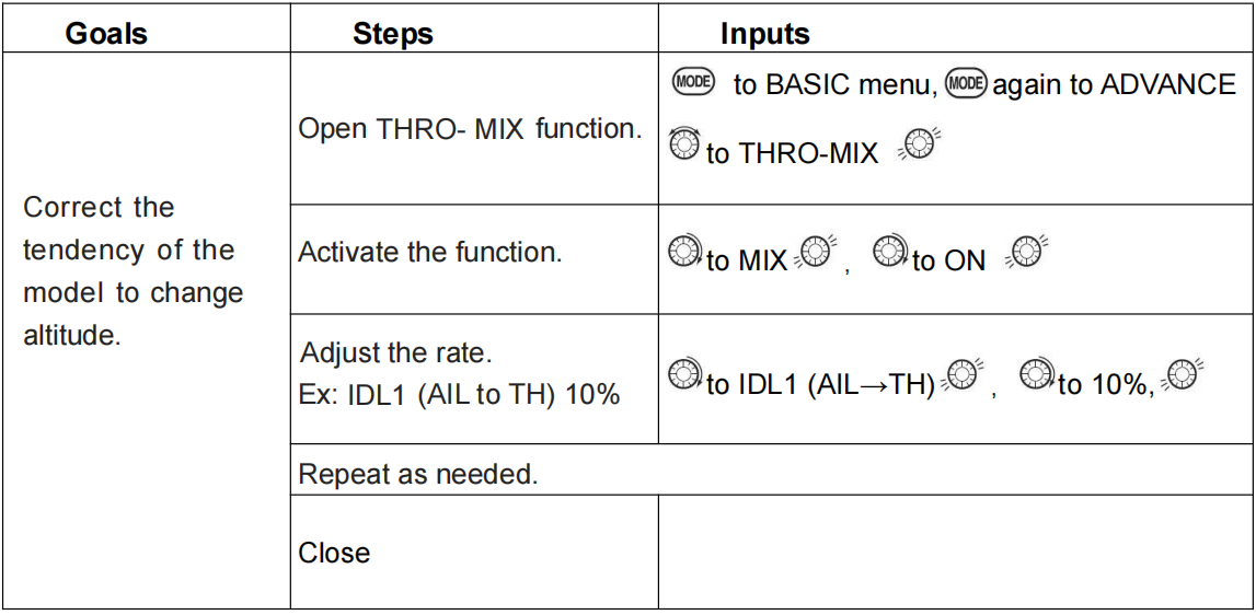 This function can be set for each flight condition, and is used to correct the tendency of the model to change altitude when the rotor is tilted by aileron, elevator, and rudder controls.