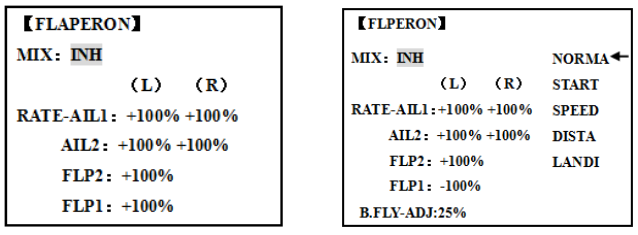 When the transmitter alarms mixing, it means at least one mixed switch is active. And when it is inactive, warning will stop then. When the transmitter is powered on, in different model type, mixing switch is shown as below:
