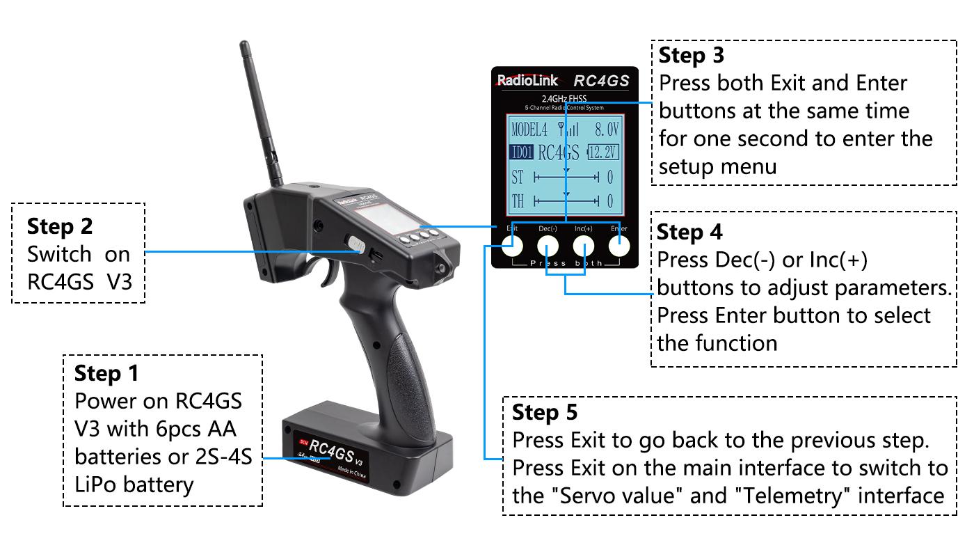Please search Radiolink_official on YouTube to access RadioLink official channel and check all the below video tutorials of RC4GS V3. View the playlist of RC4GS V3 or search key words on our channel for the function you want.
