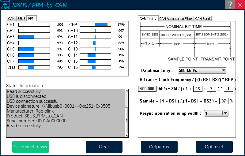 observe the CAN and SBUS/PPM data at the same time, which is simple and clear to troubleshoot.