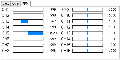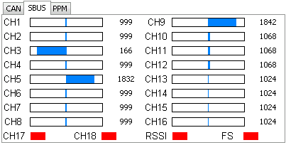 如果有SBUS信号输入那么会显示SBUS通道数据