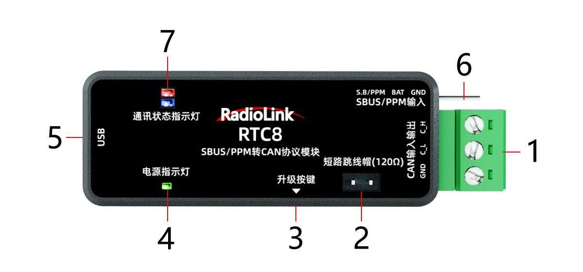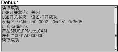PC接口符合USB2.0全速接口规范,兼容USB1.1及USB3.02. 集成1路CAN-BUS接口,使用插拔端子式接线方式3. 符合IOS/DIS 11898规范4. CAN-BUS通讯波特率在5Kbps~1Mbps之间任意可编程5. 使用USB/5-15V供电6. 最高接收数据流量100fps7. 支持Windows 7、8、9、10等Windows 系统8. 支持SBUS_PPM_TO_CAN测试软件9. 支持SBUS、PPM信号解析