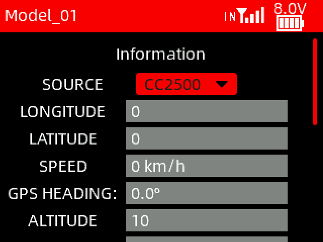 ⑧ Received Signal Strength Indication. "NULL" means there is no signal or the receiver and transmitter have not been successfully bound. The closer the RSSI value is to 0, the stronger the signal. The larger the negative RSSI value, the weaker the signal.