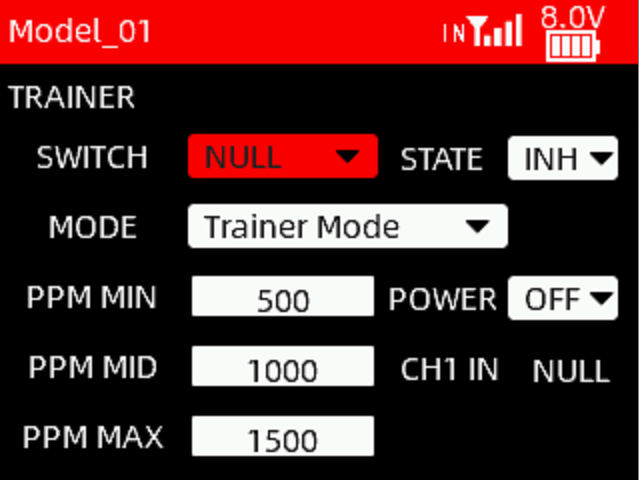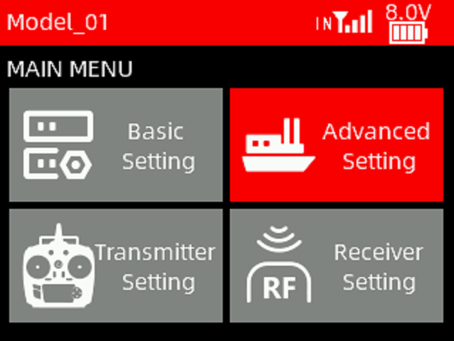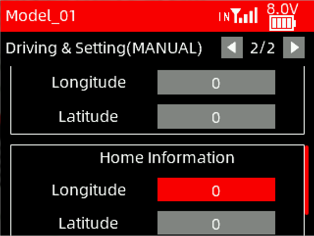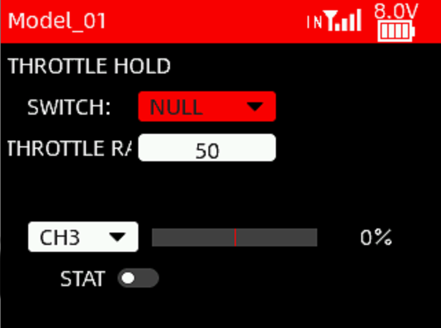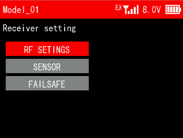 RX VOLTAGE VALUE: When the receiver voltage reaches the receiver voltage alarm value, the transmitter will issue an alarm. The minimum alarm value can be set to 3V. The maximum can be set to 12V. It defaults to 4.2V.