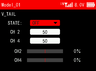 Fail safe is an important safety setting. When the signal is lost, it can be used to protect the model from loss or reduce the degree of loss. It can also play a certain protective role in personnel safety. This function sets the output value performed by each channel when the signal is lost. All channels default to 0% and can be customized according to the needs of the device.